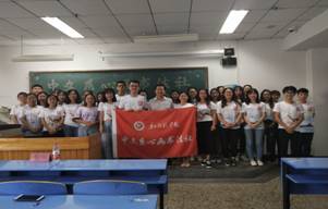 在中文系心画书法社即将迎来成立十年之际,2018年9月11日下午,心画书法社2016级、2017级成员在北院文201教室举行了简短而隆重的换届会议。会议首先播放了年度工作总结视频,大家一起回忆一年以来心画书法社走过的时光。接下来,两任社长先后发言,总结成绩,展望未来。随后,新任社长、2017级的马佳帅向上一任社长、2016级刘佳琪赠送了“躬耕心画,以社为家”的书法作品,并举行了社旗交接仪式。